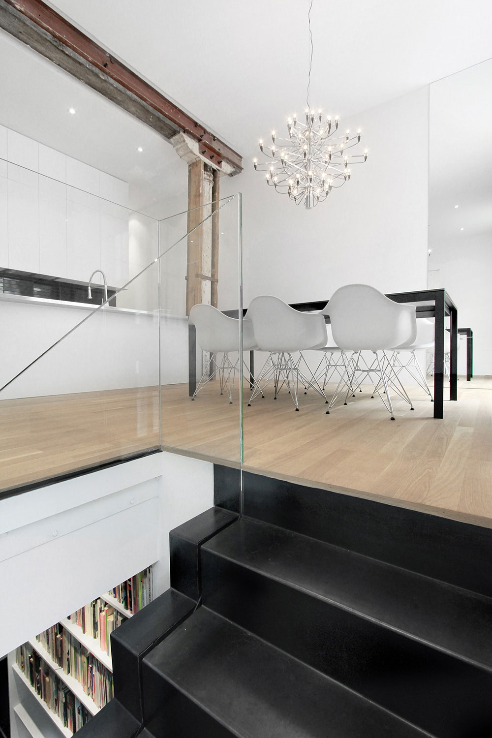Изящные лестницы, ярко сверкающие даже при естественном освещении, делают переходы между комнатами элегантными и стильными.