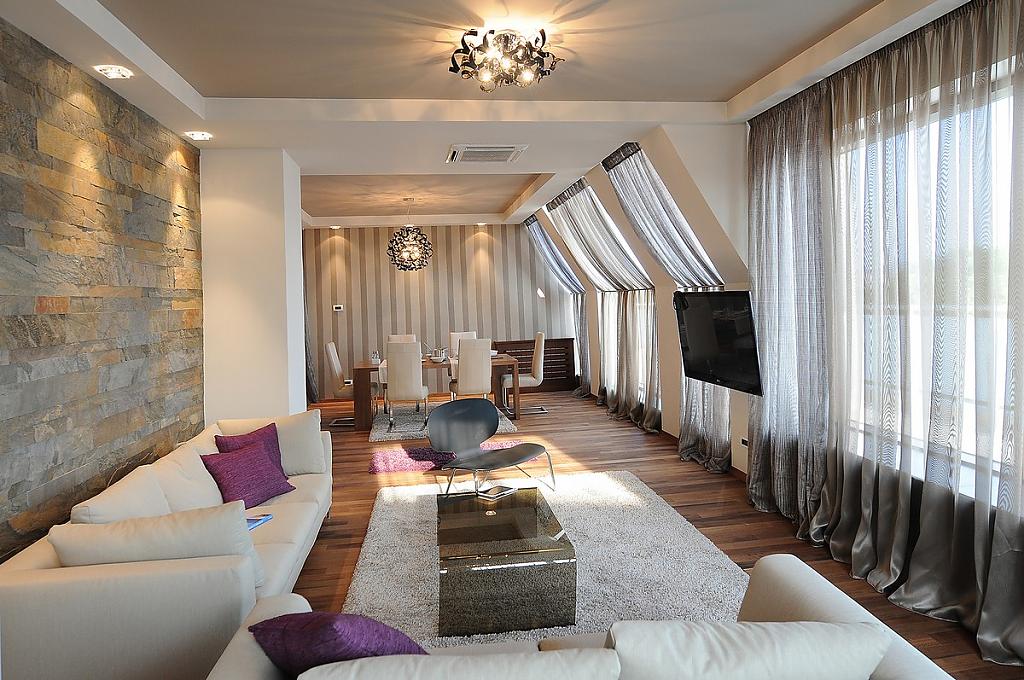 Великолепный проект дизайна интерьера роскошной резиденции, представленный сегодня на Форум-Граде, включает в себя три спальни, большую гостиную, гардеробную и кабинет. Владельцами являются молодая пара, которая мечтала иметь уютное жильё в тихом районе Belgrade, переустроить его в новейшем, комфортном и функциональном стиле. Студия Gradnja.rs и дизайнер Sonja Brstina разработали проект интерьера с доминирующими модными линиями и цветами. Апартаменты находятся на верхнем уровне здания, окружённые практически со всех сторон великолепной просторной террасой.